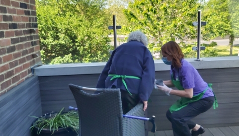With this lovely weather, residents from Perry Lane are enjoying their gardening club in the terrace