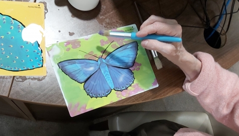 One of our residents in our Perry Lane community doing an art session in her room with the...